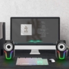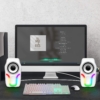 HomeShopComputer accessoriesComputer Speakers,2.0 Stereo Volume Control Gaming Speakers with Surround Sound,6 RGB LED Backlit Effect,USB Powered Wired Laptop Speakers with 3.5mm for Desktop Computer/PC/Laptops(White)
