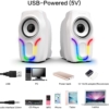 Computer Speakers,2.0 Stereo Volume Control Gaming Speakers with Surround Sound,6 RGB LED Backlit Effect,USB Powered Wired Laptop Speakers with 3.5mm for Desktop Computer/PC/Laptops(White)