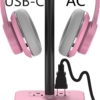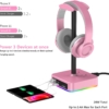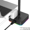 KAFRI RGB Headphone Stand with USB Charger Desk Gaming Headset Holder Hanger Rack with 3 USB Charging Port and 2 Outlet – Suitable for Gamer Desktop Table Game Earphone Accessories Boyfriend Gift
