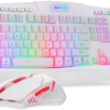 MFTEK RGB Rainbow Backlit Gaming Keyboard and Mouse Combo, LED PC Gaming Headset with Microphone, Large Mouse Pad, Small Compact 87 Keys USB Wired Mechanical Feeling Keyboard for Computer Gamer Office